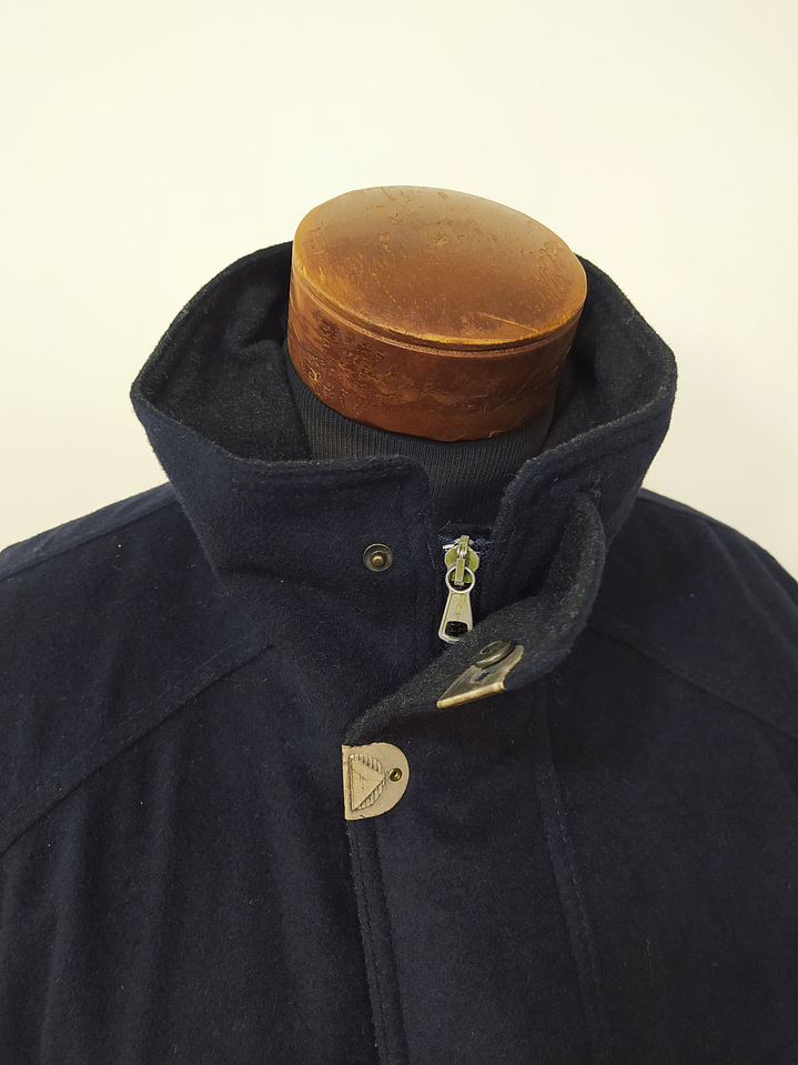 Simpatex® es una firma alemana especializada en tejidos técnicos impermeables, transpirables y sostenibles. Utilizada por marcas de alto rendimiento, su tecnología combina protección climática con materiales de calidad como lana o algodón premium, ofreciendo confort y durabilidad en todo tipo de condiciones. 🧶 Descripción de la prenda Abrigo confeccionado en lana azul marino con tecnología impermeable Simpatex®, ideal para lluvia ligera o viento.
