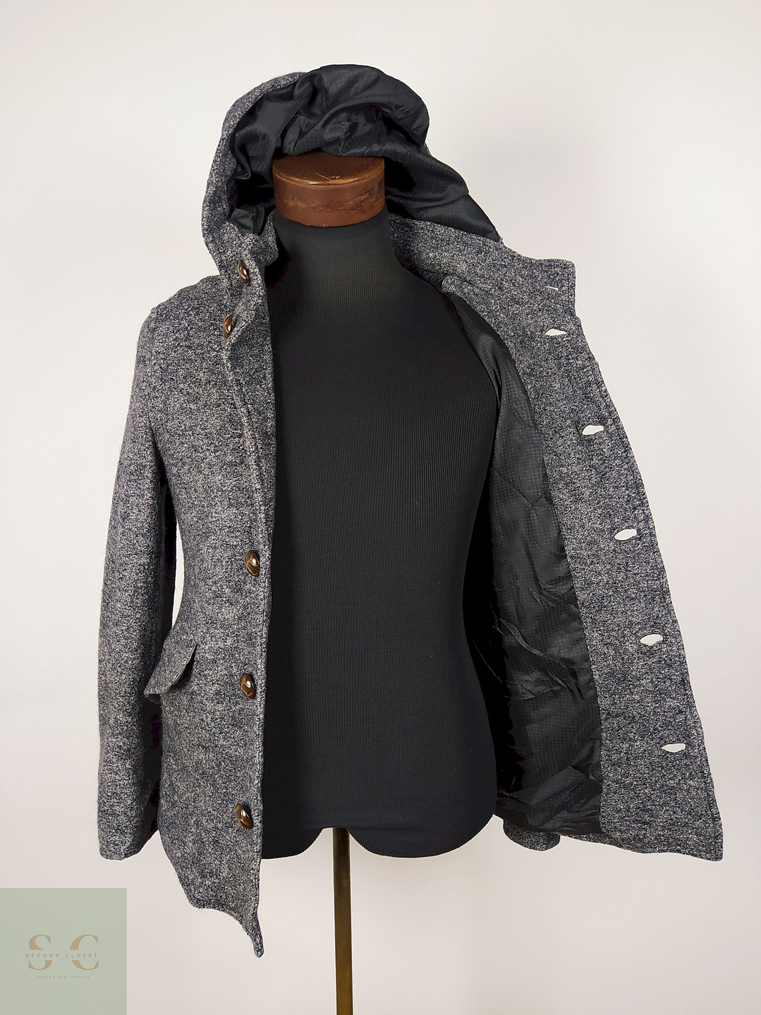 Abrigo entallado estilo sport en tono plomo jaspeado, de la marca Grand Phase, diseñado para destacar por su estructura moderna y detalles prácticos. Confeccionado en mezcla de lana con forro acolchado, ideal para invierno.