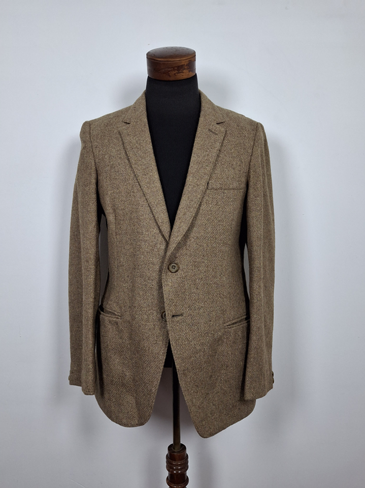 Blazer confeccionado en mezcla de lana de textura gruesa, con un distintivo acabado tipo Shetland, caracterizado por su suavidad, cuerpo y resistencia.