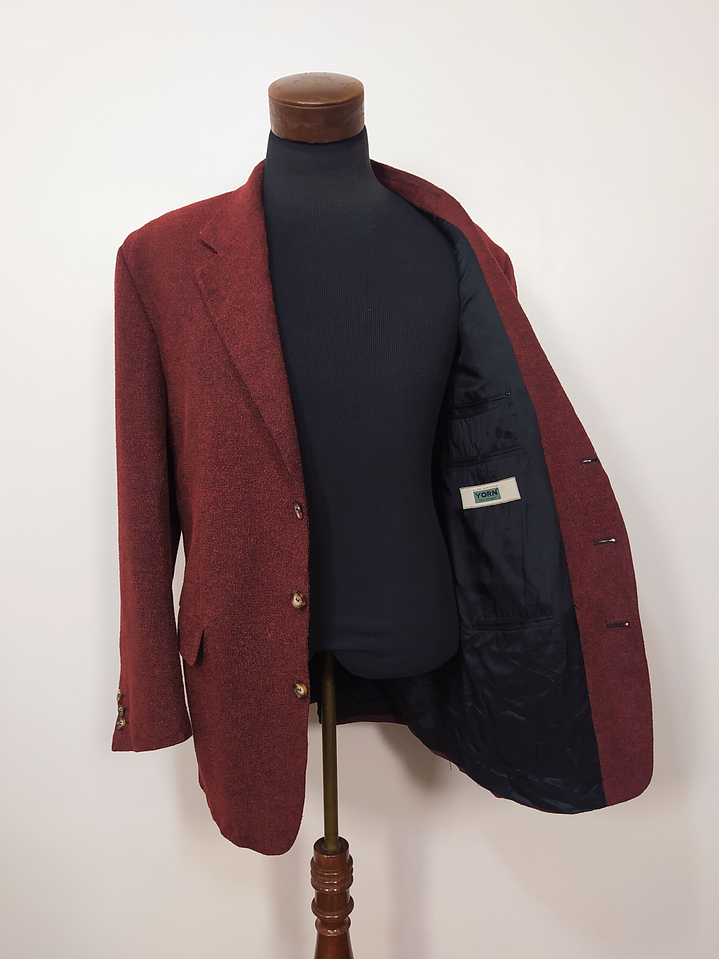 Descubre el vestón Yorn en un elegante diseño rojo y negro, confeccionado con una mezcla de algodón y poliéster que garantiza comodidad y durabilidad. Este modelo, con código BH45, es ideal para quienes buscan una prenda versátil y con estilo, perfecta para diversas ocasiones.