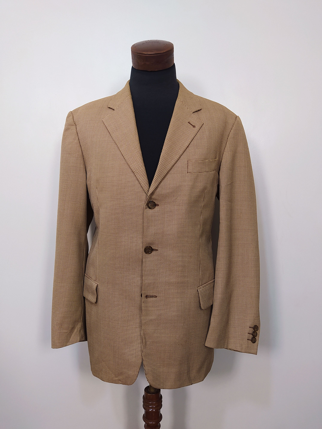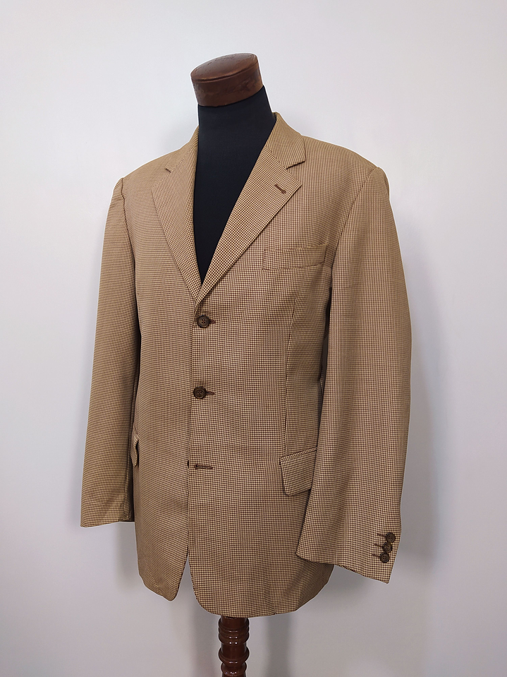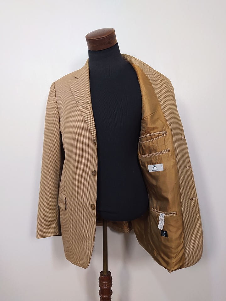 Vestón Sin Marca pata de gallo rojo café crema de mezcla lana. Código: BH49. Talla: ML.